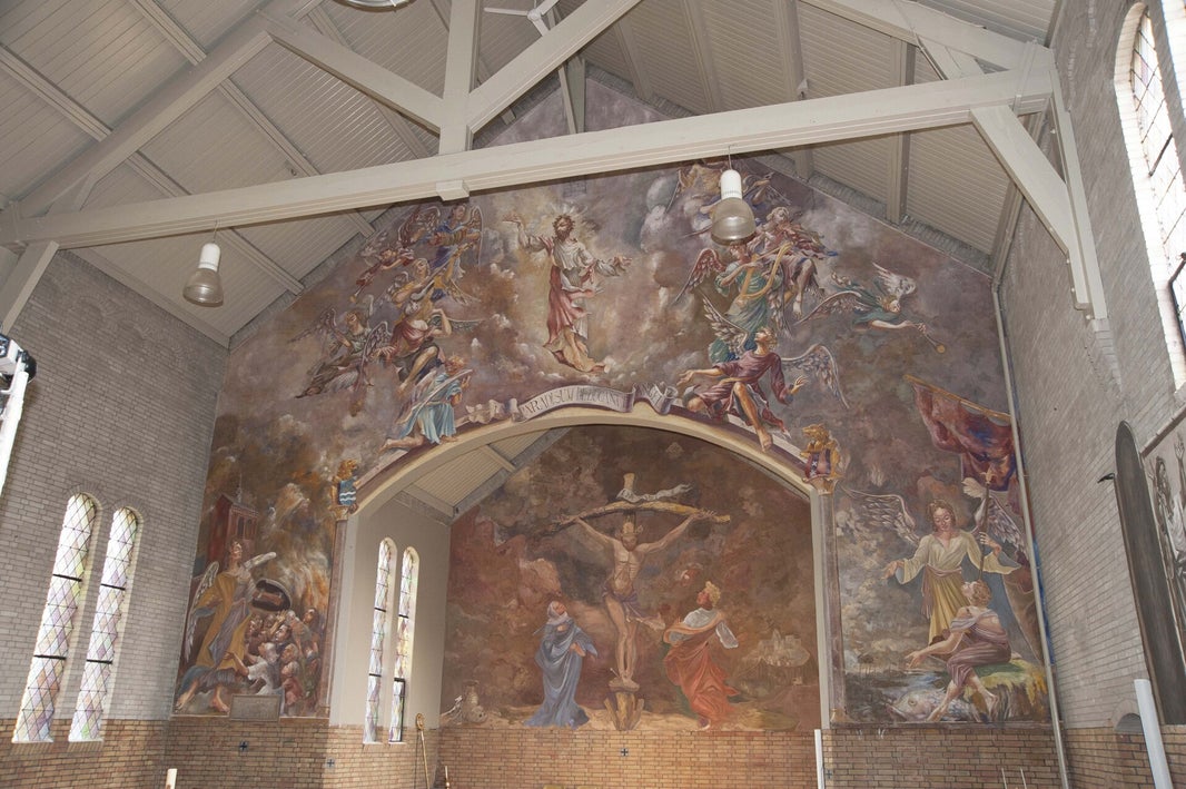 In de roomskatholieke kerk uit 1937 zijn in de oorlogsjaren schilderingen aangebracht door de Utrechtse schilder J.B.Lambert Simon. In het totaal 230m2 wandschildering en 95m2 op de wand van het hoofdaltaar en 14 kruiswegstaties boven de segment bogen met een oppervlakte van 135m2.